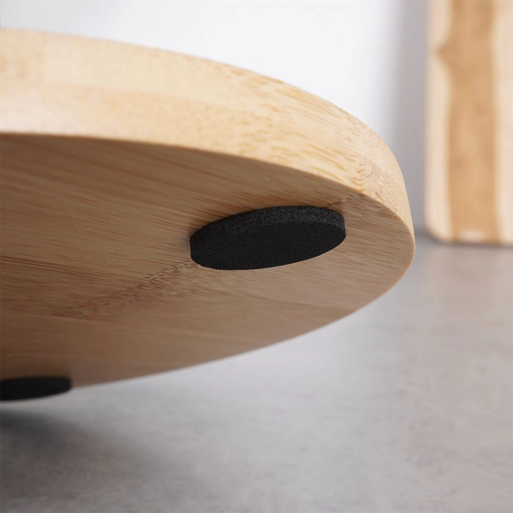 Baza rotundă cu tampoane antiderapante menține suportul ferm pe poziție și protejează blatul împotriva zgârieturilor.