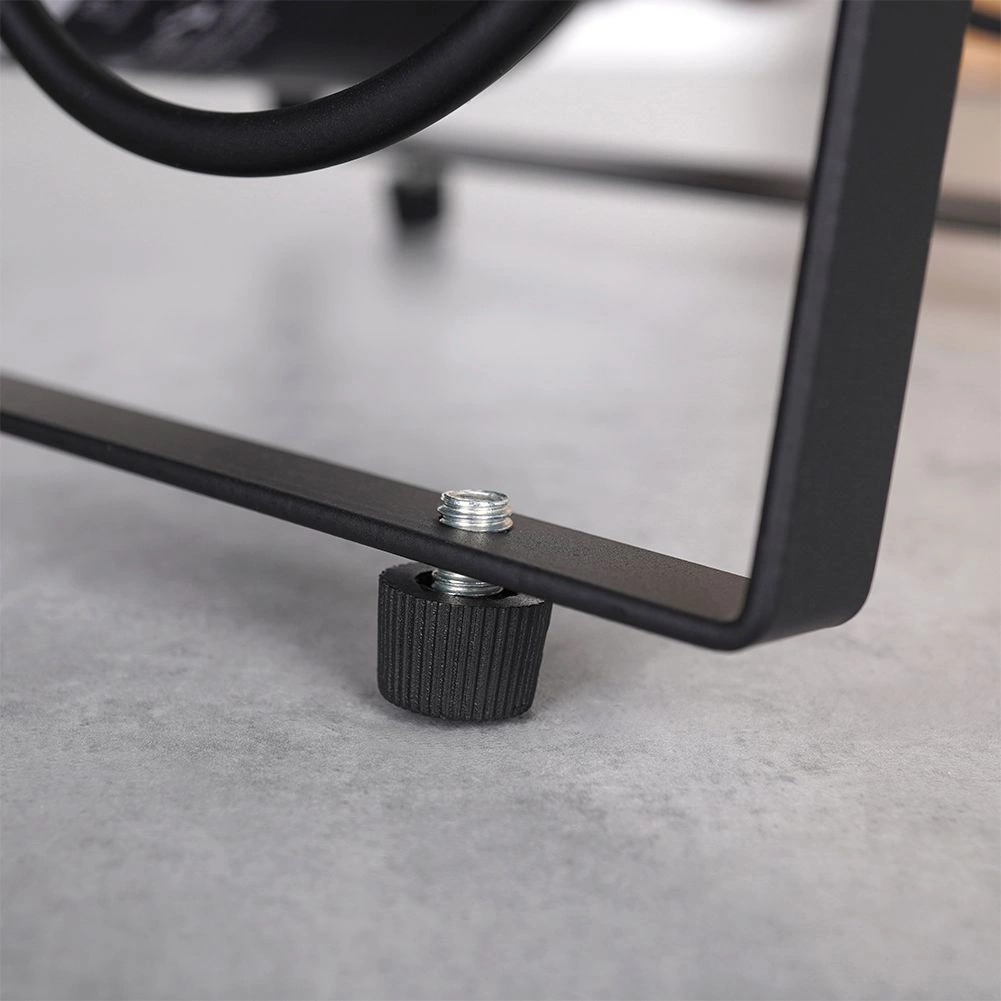 Cadrul robust din oțel, cu suporturi ondulate, fixează sigur sticlele și le protejează de mișcare. Picioarele antiderapante asigură stabilitate pe blatul de lucru sau pe raft.