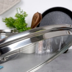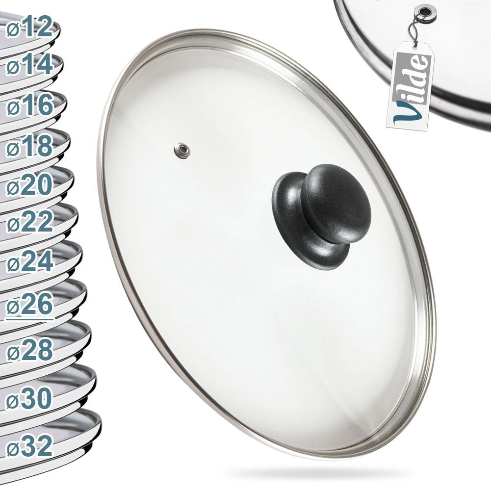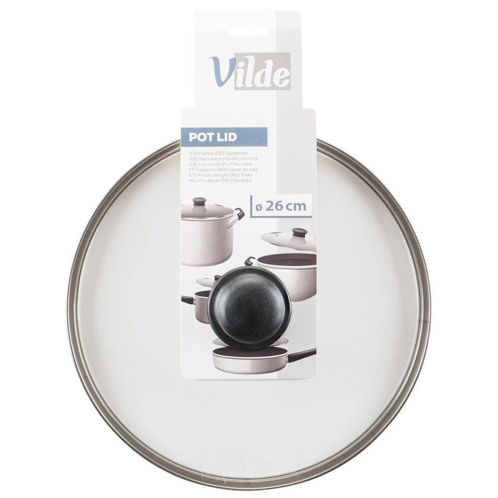 Capacul din sticlă VILDE 26 cm este un accesoriu de încredere pentru oale, tigăi și crăticioare cu același diametru. Sticla transparentă și rezistentă permite controlul preparatului în timp real, în timp ce marginea din inox asigură robustețe, durată de viață îndelungată și așezare stabilă pe vas.