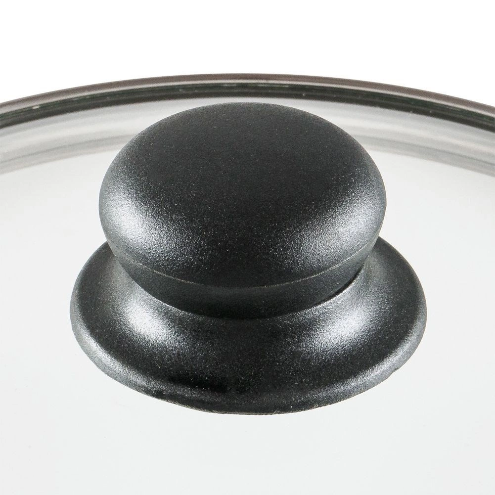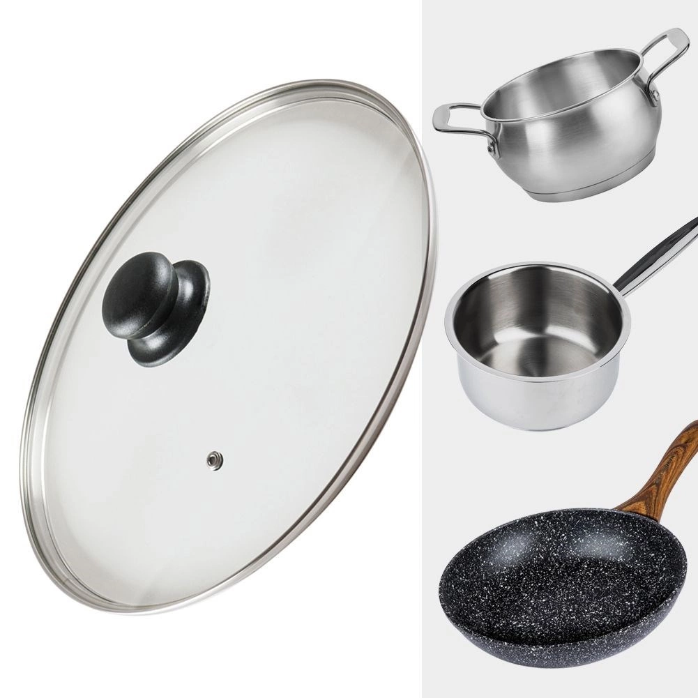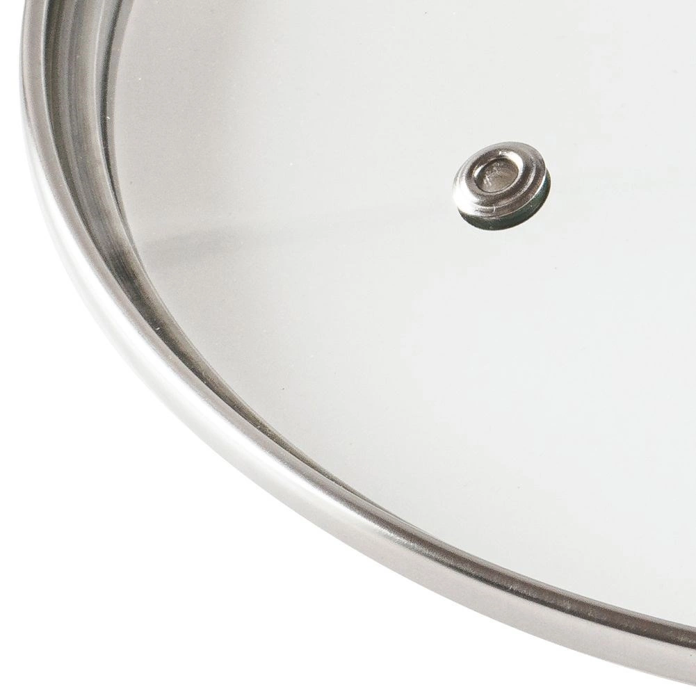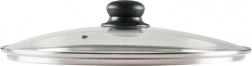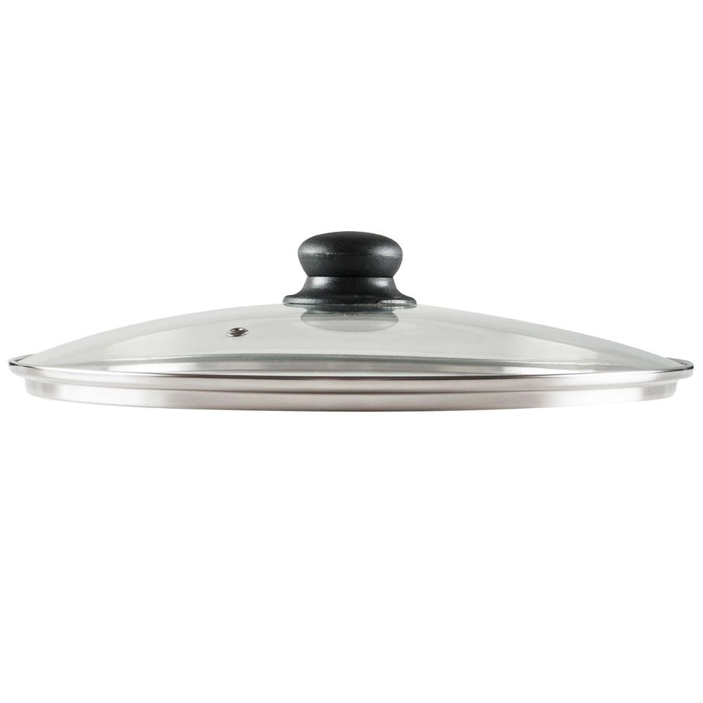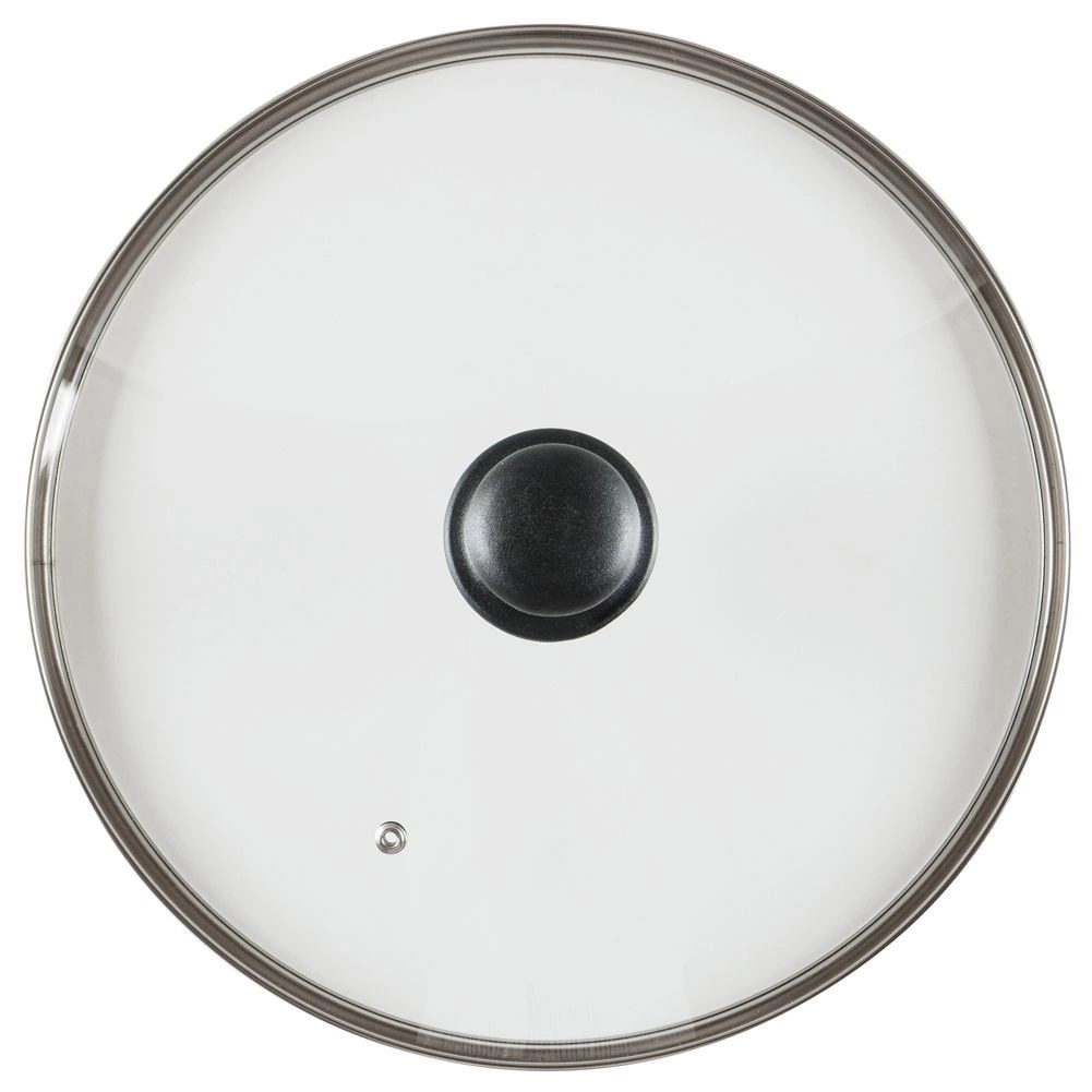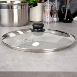 Capacul este fabricat din sticlă termorezistentă cu margine din oțel inoxidabil în culoare argintie elegantă și mâner din plastic rezistent de culoare neagră. Este ușor bombat pentru o mai bună circulație a aerului fierbinte și este prevăzut cu orificiu de ventilare pentru evacuarea în siguranță a aburului în exces. Rantul înalt asigură așezare fermă și etanșă pe marginea vasului.