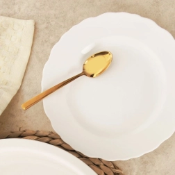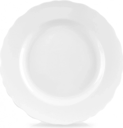 Farfuria universală de desert din colecția Mona impresionează prin albul curat și marginea ondulată decorativă. Este practică pentru utilizarea zilnică și pentru mesele festive – perfectă pentru prăjituri, deserturi, gustări și porții mai mici de mic dejun sau cină.
