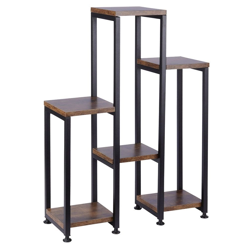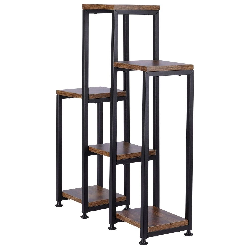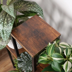 Rama robustă din metal de culoare neagră și plăcile MDF de calitate în decor de lemn închis formează o structură rezistentă și stabilă. Suportul este potrivit pentru plante naturale sau artificiale, se potrivește în interioare moderne și industriale și, datorită întreținerii facile, va arăta mereu excelent.
