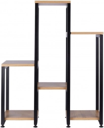 Rama metalică neagră și rafturile din MDF cu aspect natural de lemn combină rezistența, stabilitatea și stilul industrial modern.