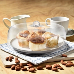 Clopotul pentru alimente CHARISMA este un ajutor universal pentru bucătărie, sufragerie și grădină. Vă menține torturile, prăjiturile, brioșele, sandvișurile sau brânzeturile mai mult timp proaspete și bine protejate. Acrilul transparent asigură vizibilitate deplină fără a fi nevoie să ridicați capacul, astfel încât este ideal și pentru servire și prezentare acasă, în cafenea sau cofetărie.