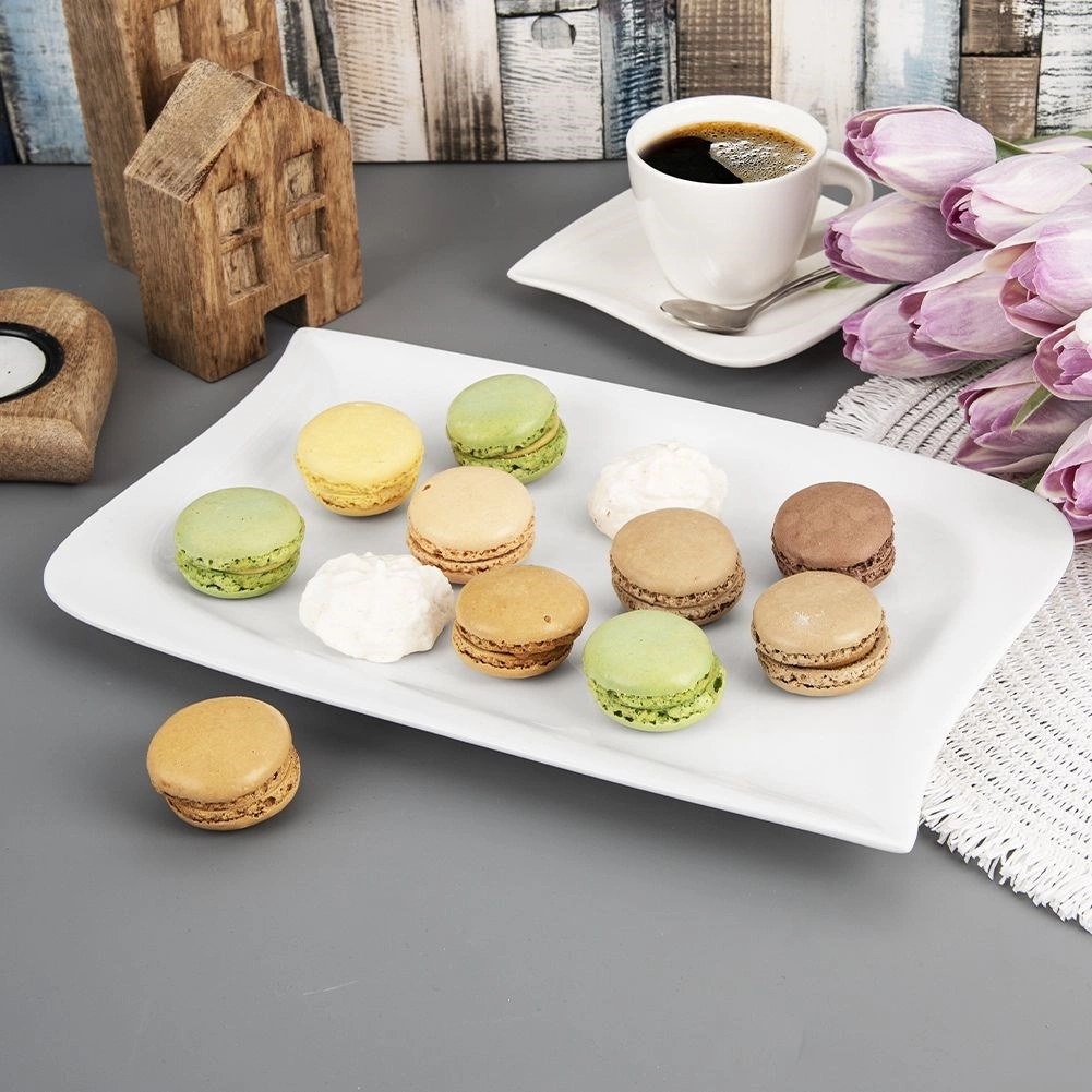 Linii curate, margini ușor rotunjite și glazură albă lucioasă care pun în valoare orice preparat – de la deserturi la sushi.
