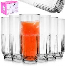 Acest set de 6 pahare combină designul curat cu funcționalitatea. Sticla transparentă cu striații verticale accentuate oferă băuturilor un aspect atractiv și, în același timp, asigură o prindere confortabilă. Forma înaltă este ideală pentru servirea apei, limonadelor de casă, ceaiului rece și a băuturilor mixate.