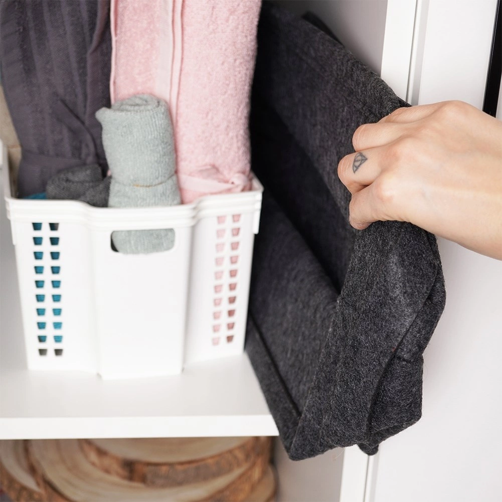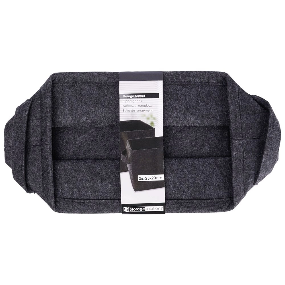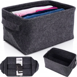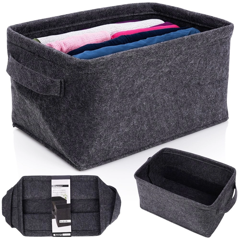 Acest coș pliabil din fetru, cu dimensiunile 36 × 27 × 20 cm, este o alegere excelentă pentru depozitarea organizată a textilelor, jucăriilor, accesoriilor și a articolelor de birou. Datorită țesăturii din fetru groase și rezistente, își păstrează forma, fiind în același timp ușor și simplu de transportat.