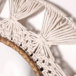 Această oglindă de design este o alegere excelentă pentru living, hol și dormitor. Combinația materialelor naturale și a împletiturii cu aspect manual creează o ramă spectaculoasă, care va deveni un element accent în decorul boho, rustic și modern.