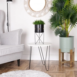 Masca decorativă neagră cu stativ metalic subțire se potrivește atât în interioare moderne, cât și clasice. Ghiveciul metalic poate fi scos cu ușurință de pe stativ și mutat. Datorită poziției înălțate, plantele se evidențiază mai bine și beneficiază de o circulație naturală a aerului.