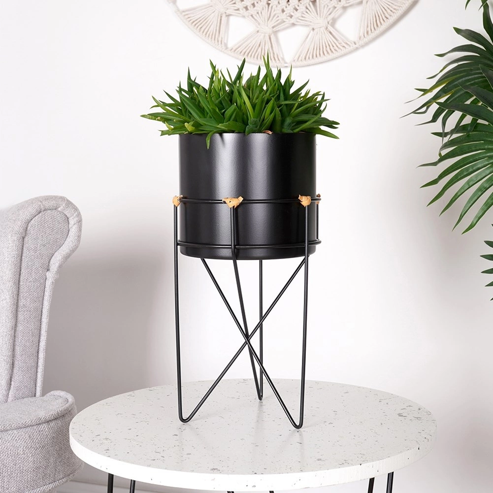 Stativul din sârmă cu picioare încrucișate și ghiveciul metalic oferă siguranță și durabilitate, astfel încât plantele să stea expuse în siguranță.