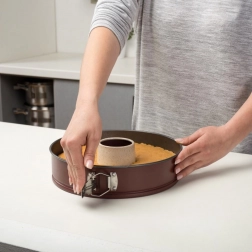 Această formă detașabilă pentru tort, cu două baze interschimbabile, combină practicitatea și fiabilitatea pentru coacerea de zi cu zi. Datorită marginii cu eliberare rapidă, scoți cu ușurință blatul fără deteriorări, în timp ce stratul granit antiaderent minimizează necesarul de grăsime și previne arderea. Finisajul bordo elegant adaugă stil bucătăriei tale.