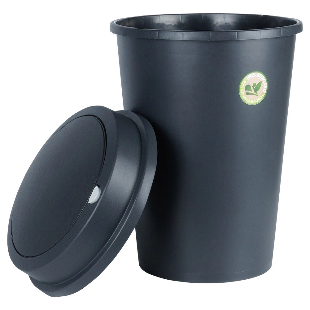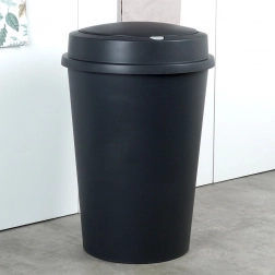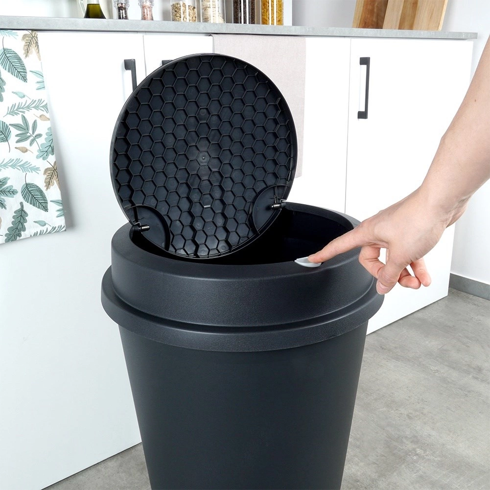 Acest coș de gunoi negru, cu volum de 47 de litri, este conceput pentru confort și curățenie zilnică. Are un capac în două faze pentru aruncarea rapidă prin basculare și pentru deschidere cu buton, ceea ce ajută la limitarea răspândirii mirosurilor. Datorită aspectului atemporal, se potrivește perfect în interioare moderne și clasice.