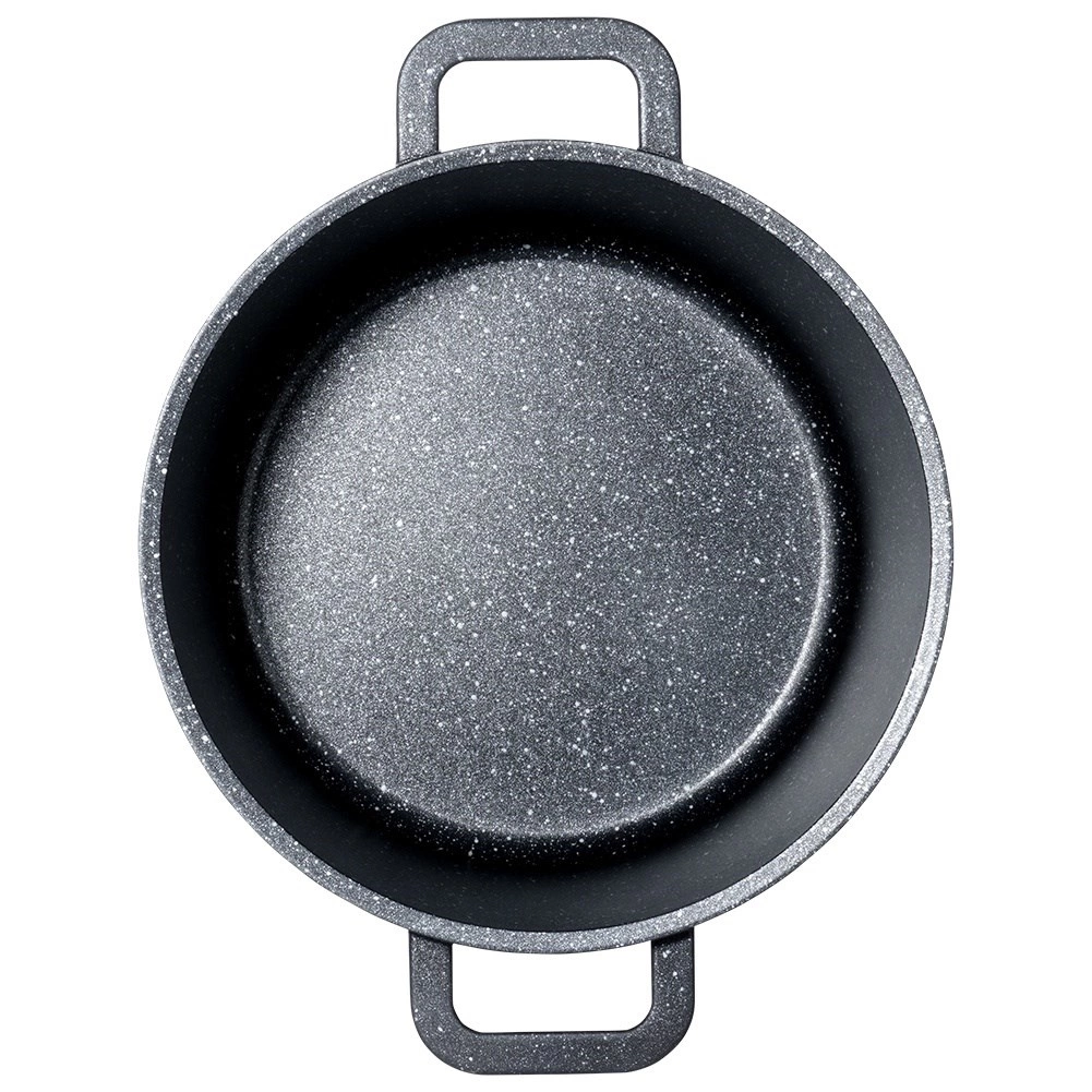 Stratul de granit este antiaderent, rezistent la zgârieturi și la temperaturi înalte. Gătiți sănătos, cu minimum de grăsime și fără lipire, fără PFOA și PTFE.