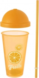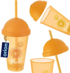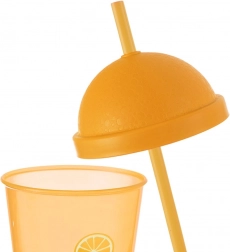 Pahar stilat cu volum de 450 ml, cu capac tip cupolă și pai reutilizabil, ideal pentru băuturile de zi cu zi. Este fabricat din plastic rezistent, de culoare portocalie, cu decor citric atrăgător. Datorită capacului, băutura este protejată, iar paiul este conceput astfel încât să nu cadă. Perfect pentru apă, limonadă, cocktailuri sau sucuri – acasă și în grădină. Ușor, incasabil și practic pentru picnicuri și întâlniri în aer liber.