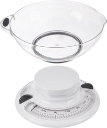 Acest cântar de bucătărie mecanic este un ajutor de încredere pentru gătitul și coptul zilnic. Datorită bolului transparent, detașabil, cu volum de 1,4 l, cântăriți cu ușurință ingrediente solide și lichide. Cadranul analogic cu dublă scară în g/kg și lbs/oz este clar și permite resetare la zero comodă. Cântarul nu necesită baterii, fiind mereu gata de utilizare.