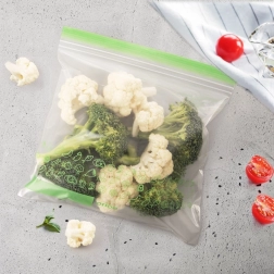 Mențineți ordinea în bucătărie și în casă cu pungile universale cu fermoar. Designul transparent permite verificarea imediată a conținutului, iar câmpul dedicat pentru etichetă facilitează marcarea alimentelor sau a mărunțișurilor. Fermoarul dublu previne în mod fiabil scurgerea mirosurilor și a lichidelor și protejează conținutul de umiditate.