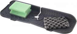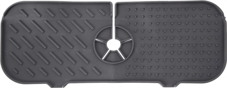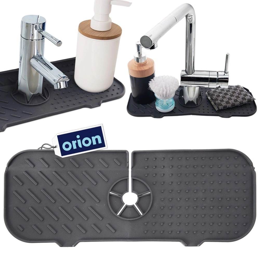 Păstrați curat și uscat în jurul chiuvetei și în baie. Suportul din silicon, cu decupaj practic în jurul bateriei, captează picăturile, redirecționează apa înapoi în chiuvetă și servește în același timp ca organizator pentru bureți, perii sau dozatoare. Protejează blatul împotriva umezelii, murdăriei și depunerilor de calcar.