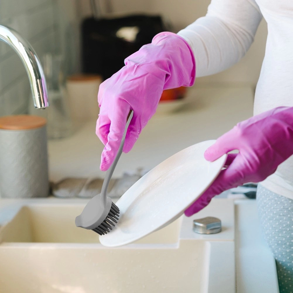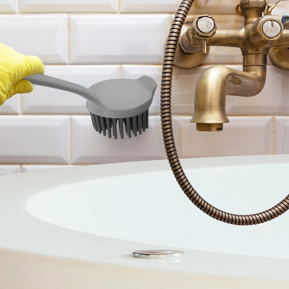 Peria din silicon pentru vase, cu lungimea de 22,5 cm, combină un corp durabil din plastic de culoare gri cu peri de silicon denși într-o nuanță de grafit. Este versatilă: spală excelent farfurii, oale și tigăi, dar ajută și la curățarea chiuvetei, rosturilor, colțurilor sau a suprafețelor din baie.