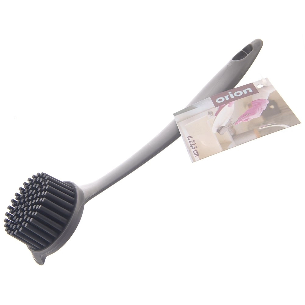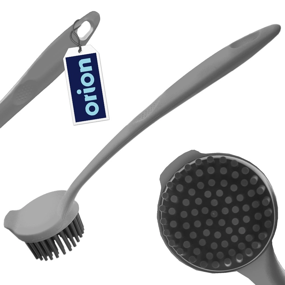 Mânerul ergonomic, cu adâncitură modelată și proeminențe pentru deget, garantează o prindere sigură chiar și cu mâinile ude. Răzuitorul frontal se descurcă cu resturile lipite și murdăria uscată, în timp ce orificiul de agățare păstrează peria mereu la îndemână. Execuția de calitate marca ORION asigură durabilitate îndelungată și întreținere ușoară.