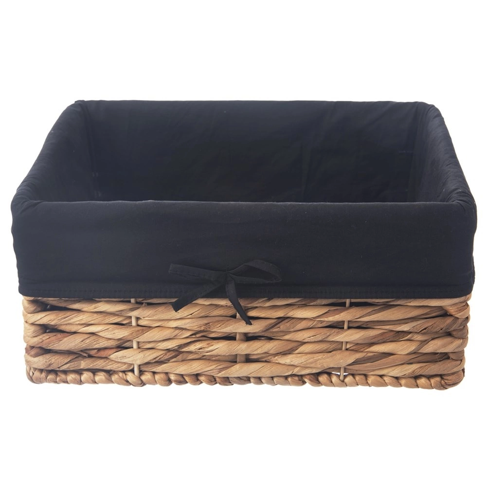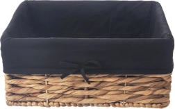 Coș de depozitare elegant din zambile de apă împletite, cu construcție rezistentă pe cadru metalic și inserție moale, lavabilă de culoare neagră, cu fundă. Datorită elasticului de pe margine, inserția se potrivește perfect și protejează atât conținutul, cât și coșul.