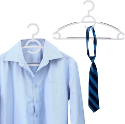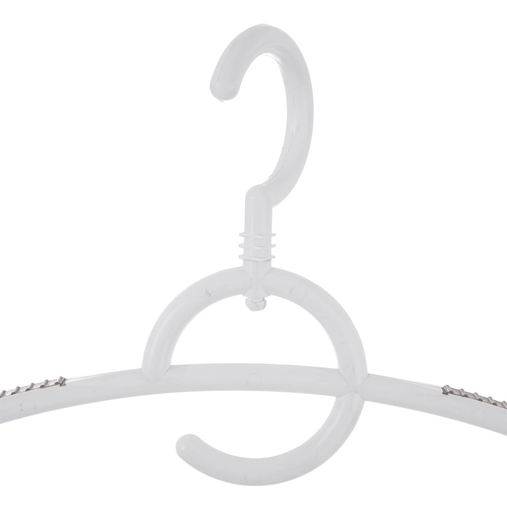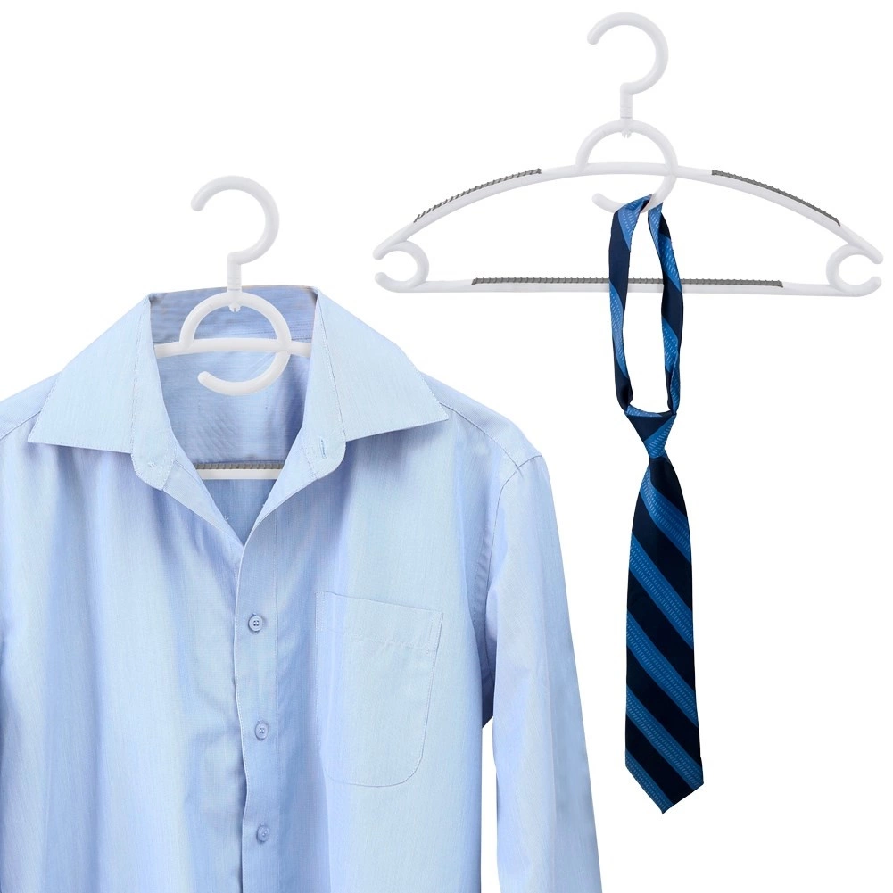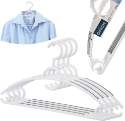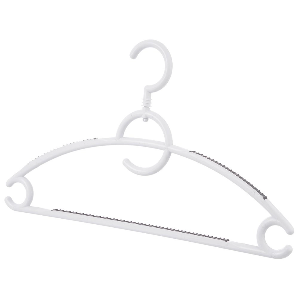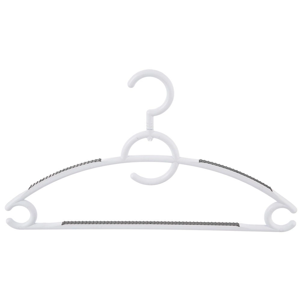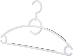 Păstrează garderoba ordonată și fără cute. Acest set de 4 umerașe albe din plastic combină durabilitatea, suprafețele antiderapante și cârligul pivotant pentru confort maxim la agățare și organizare. Datorită formei inteligente și elementelor suplimentare de agățare, fac față atât topurilor ușoare, cât și paltoanelor.