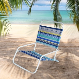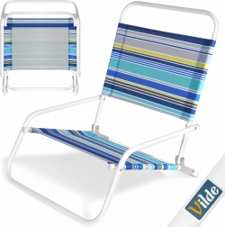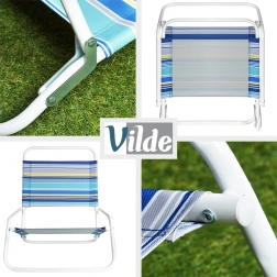 Scaunul de plajă pliabil Vilde este alegerea ideală pentru plajă, camping sau relaxare în grădină. Poziția joasă a șezutului (aprox. 18 cm) și spătarul plăcut înclinat oferă confort atât pentru stat la soare, cât și pentru citit. Construcția ușoară, dar solidă, facilitează transportul și depozitarea.