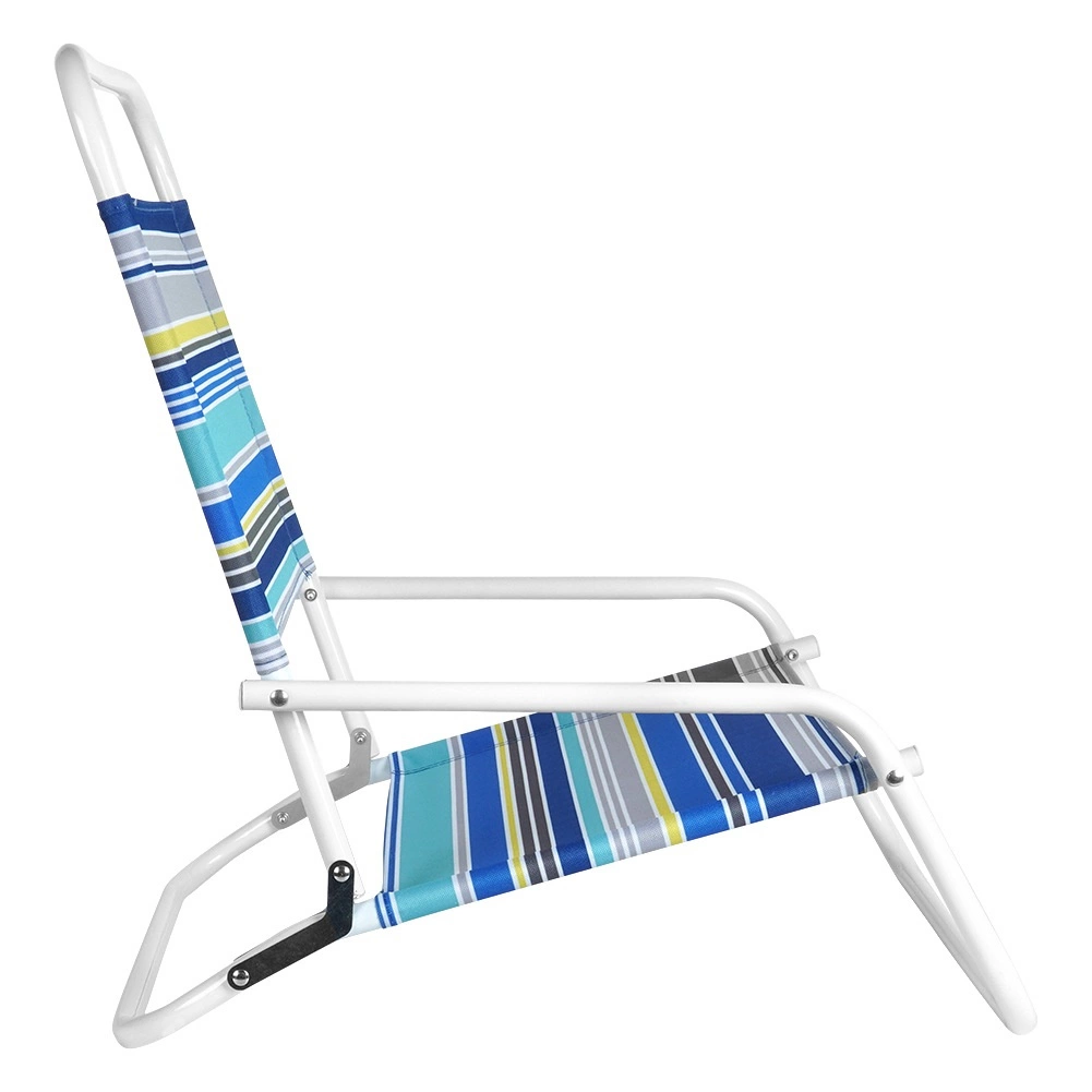 Rama din metal vopsit, în culoare albă, este rezistentă și stabilă, iar șezutul și spătarul sunt realizate din țesătură respirabilă din poliester, în nuanțe de albastru. Datorită cotierelelor vei adopta o poziție natural confortabilă. După pliere, scaunul ocupă minimum de spațiu, astfel că încape ușor în mașină sau dulap.