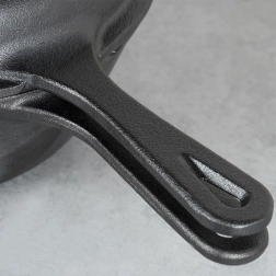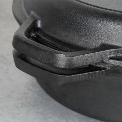 Construcția din fontă asigură o distribuție excelentă și acumulare a căldurii pentru o crustă crocantă și un miez suculent.