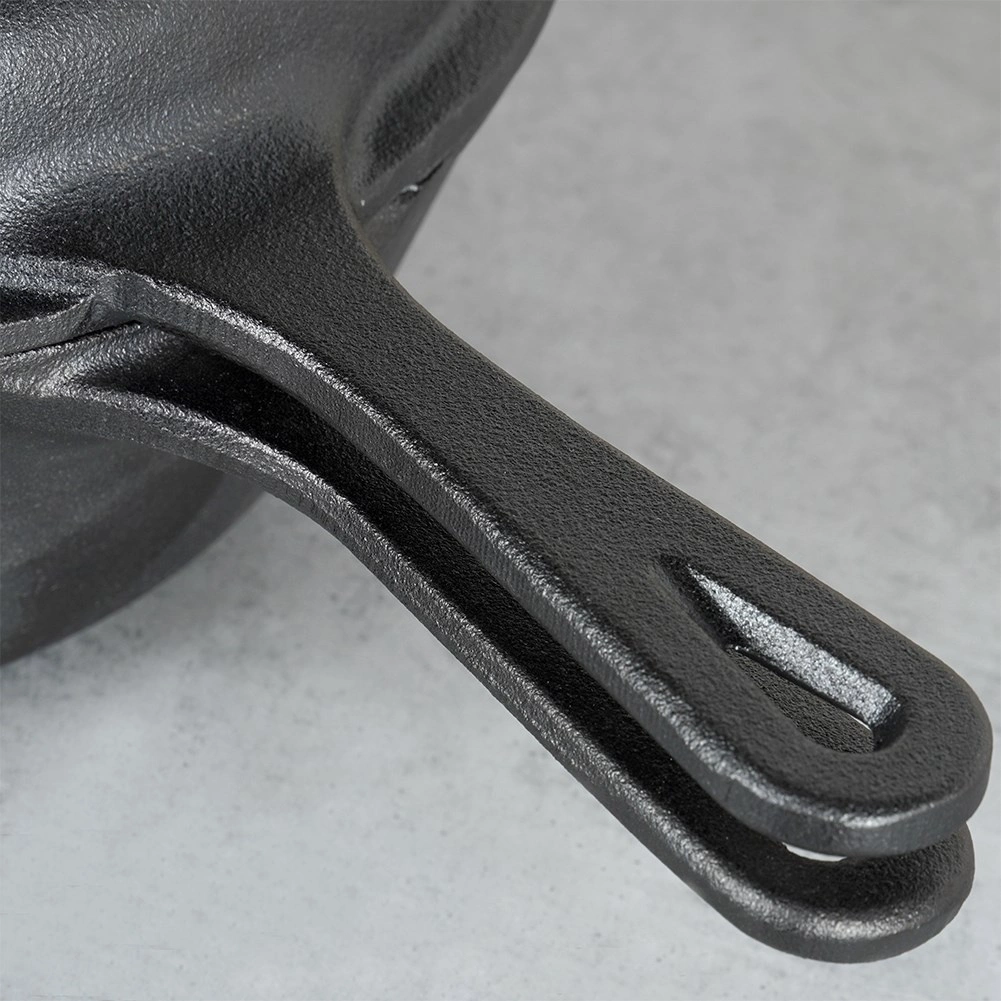 Vesela este potrivită pentru plită, cuptor, grătar și foc deschis. Mânerul lung și cel auxiliar facilitează manipularea, iar orificiul din mâner permite agățarea. Cu îngrijirea corectă (spălare manuală, uscare temeinică și o ușoară ungere cu ulei), fonta își păstrează durabilitatea ridicată.