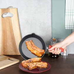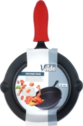 Include o mânecă roșie din silicon pentru mâner, pentru o prindere confortabilă și sigură atât la gătit, cât și la servire.