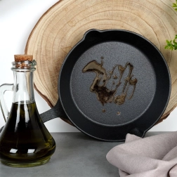 Construcția integrală din fontă asigură o conductivitate și o acumulare excelente ale căldurii. Mâncarea se gătește uniform, cu crustă perfectă și interior suculent.