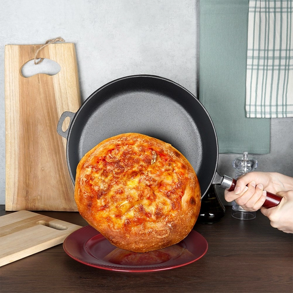 Fonta cu pereți groși se încălzește uniform și acumulează excelent căldura pentru rezultate perfecte la prăjire și coacere.
