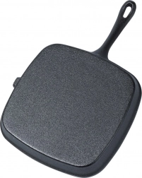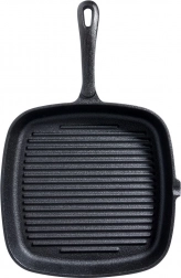 Această tigaie robustă din fontă, 24,5 × 24 cm, este creată pentru fripturi, legume și cartofi gătiți perfect. Fonta masivă se încălzește uniform, reține căldura mult timp, iar preparatele rămân calde mai mult. Suprafața striată creează dungi pronunțate de grătar și permite evacuarea grăsimii în exces.