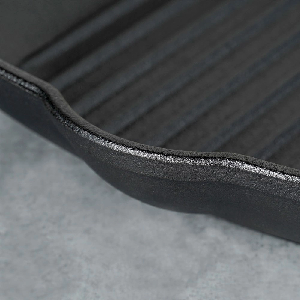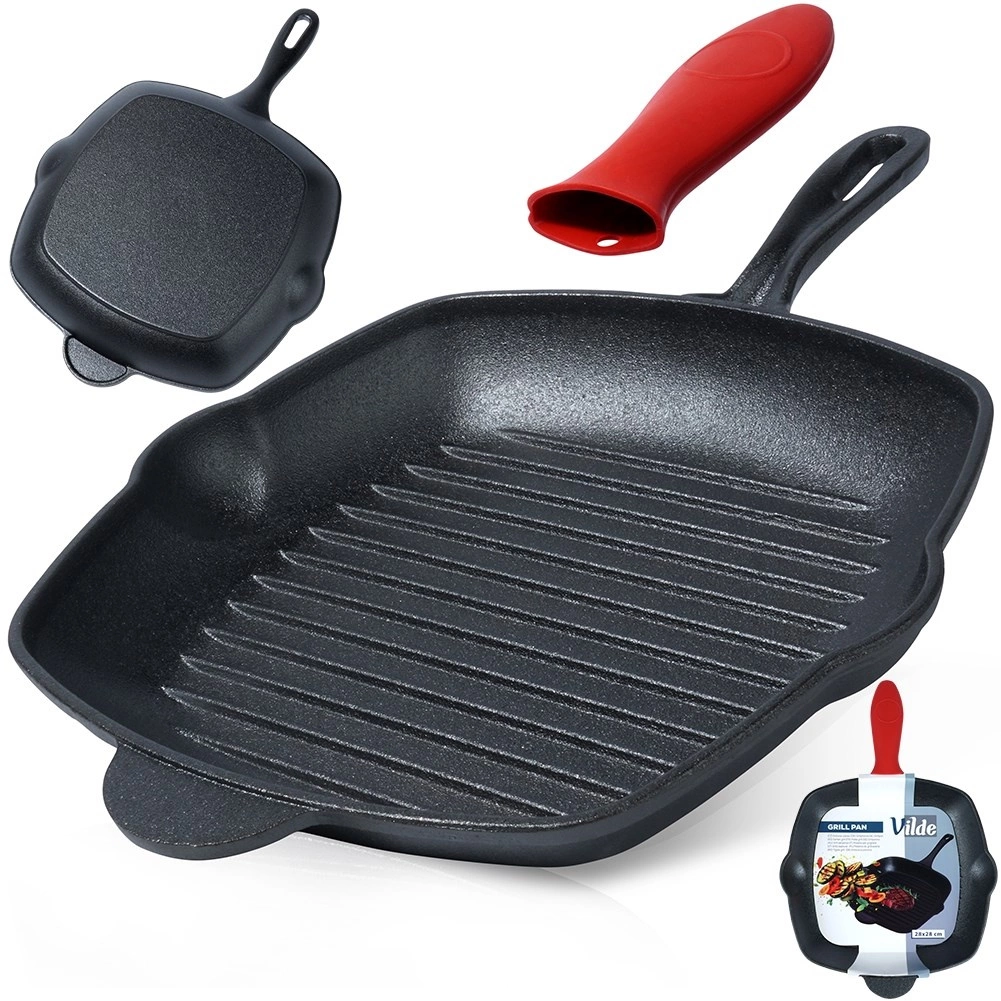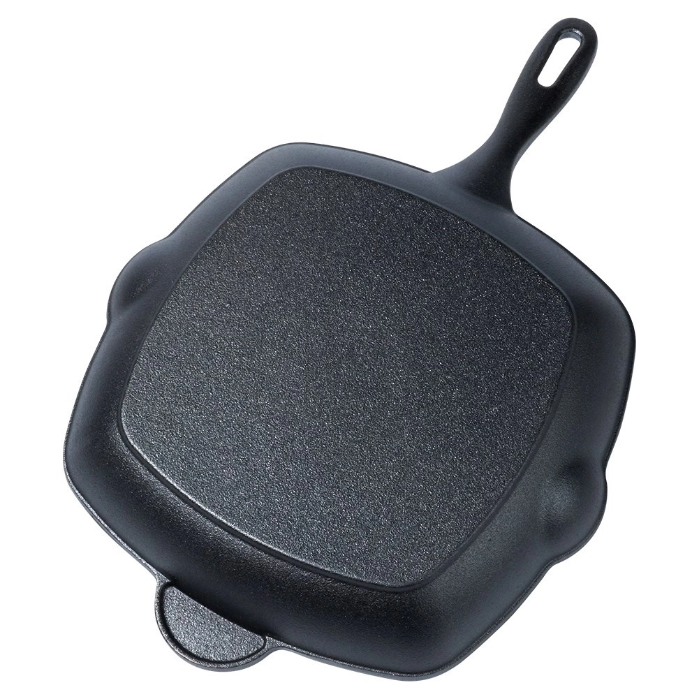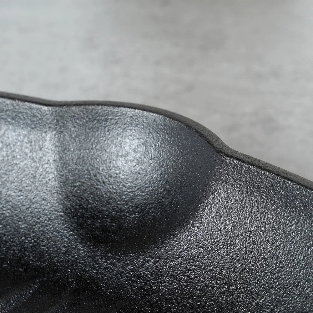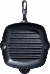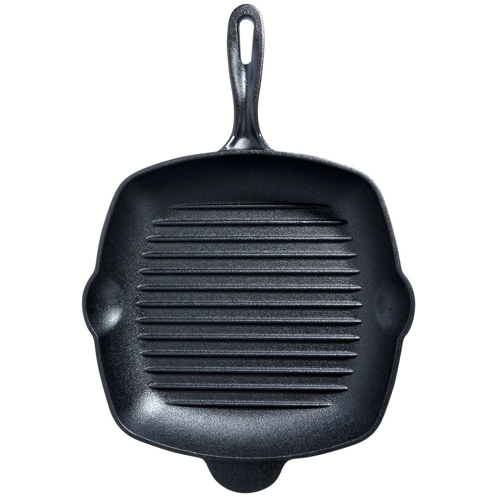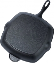 Tigaia din fontă cu șanțuri pronunțate vă permite să faceți grătar acasă ca pe grătarul de exterior. Fonta conduce și reține excelent căldura, astfel obțineți rumenire intensă, interior suculent și dungi frumoase de grătar. Ciocurile practice de pe ambele părți facilitează scurgerea surplusului de grăsime și servirea sosurilor.