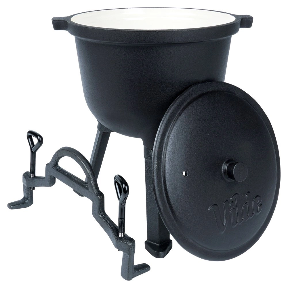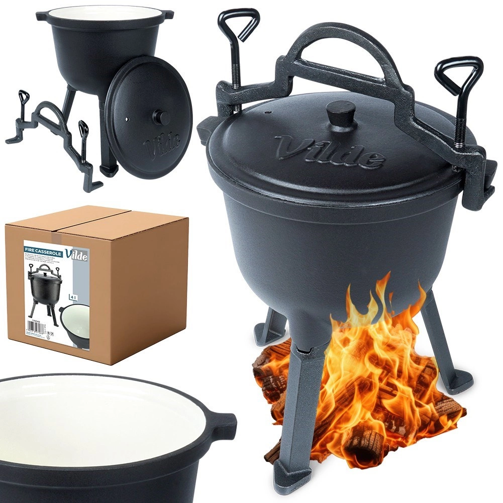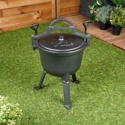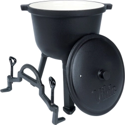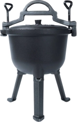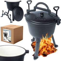 Acest ceaun rezistent din fontă neagră, cu interior emailat bej, reține și transmite uniform căldura, astfel încât mâncarea se gătește mai repede și rămâne suculentă și aromată. Datorită celor trei picioare stabile, este sigur pentru utilizare deasupra focului sau a cărbunilor încinși. Potrivit pentru fierbere, coacere, înăbușire și prăjire în natură.