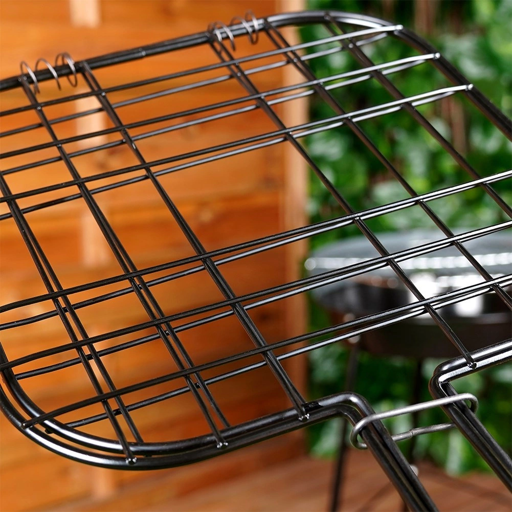 Coșul este universal – potrivit pentru burgeri, fripturi, pește și legume. Construcția tip hinged clamshell cu zăvor solid menține ingredientele la locul lor și permite întoarcerea ușoară a întregii suprafețe dintr‑o mișcare, astfel obții o gătire uniformă și urme frumoase de grătar.