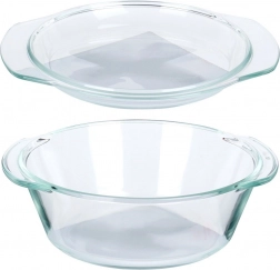 Vas practic din sticlă pentru cuptor, cu capac, în două mărimi, pentru coacere și servire versatile. Fabricat din sticlă borosilicată, rezistentă de la -30 °C la +400 °C, potrivit pentru cuptor, microunde, mașina de spălat vase și pentru frigider și congelator. Sticla transparentă facilitează controlul coacerii, mânerele asigură manipularea în siguranță, iar capacul poate fi folosit ca al doilea vas.