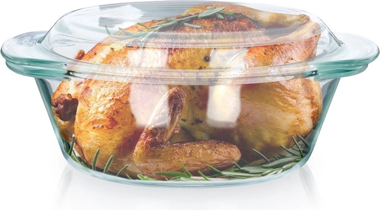 Din sticlă borosilicată durabilă, pentru utilizare zilnică: coacerea cărnii, lasagna, cartofi gratinați, legume și deserturi. Vasele sunt potrivite pentru toate tipurile de cuptoare și cuptoare cu microunde, pentru mașina de spălat vase, frigider și congelator. Respectați principiul încălzirii și răcirii treptate și nu așezați pe surse directe de căldură.
