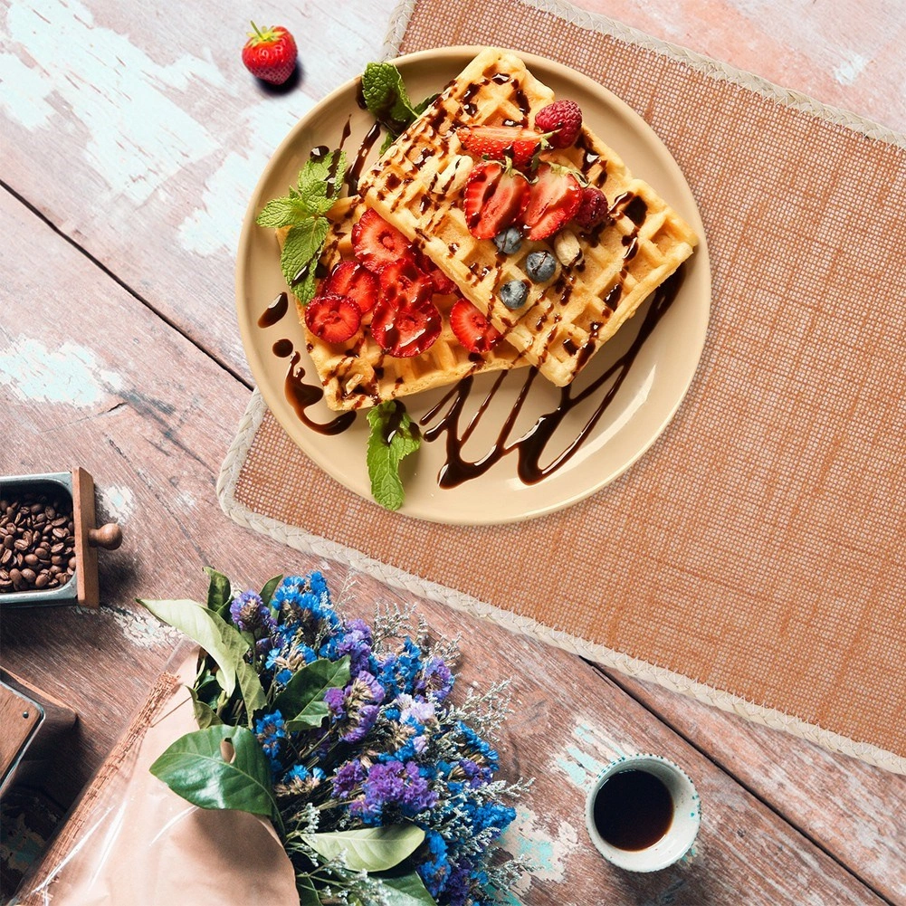 Suportul este realizat din fibră de poliester rezistentă, astfel încât este solid, durabil și ușor de întreținut – murdăria se îndepărtează prin ștergere cu o cârpă umedă. Îl puteți folosi nu doar sub farfurii și căni, ci și ca suport protector pentru vaze sau alte decorațiuni, pentru a preveni zgârieturile și petele de pe blatul mesei.