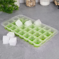 Această formă robustă combină corpul transparent și baza din silicon în nuanțe de verde pentru o extragere confortabilă fără a rupe cuburile. Datorită dimensiunilor de 32,5 × 18 × 3 cm, pregătiți o cantitate mare de gheață dintr-o dată – ideală pentru petreceri acasă, cocktailuri și răcorirea băuturilor de zi cu zi.