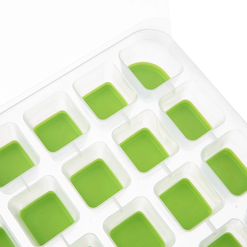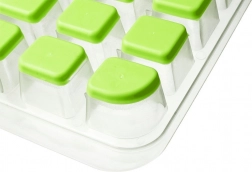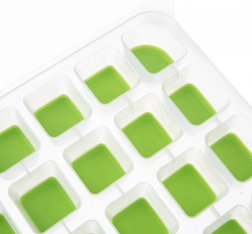 Baza verde flexibilă permite împingerea fără efort a fiecărui cub, fără crăpare și fără răsucirea tăvii.