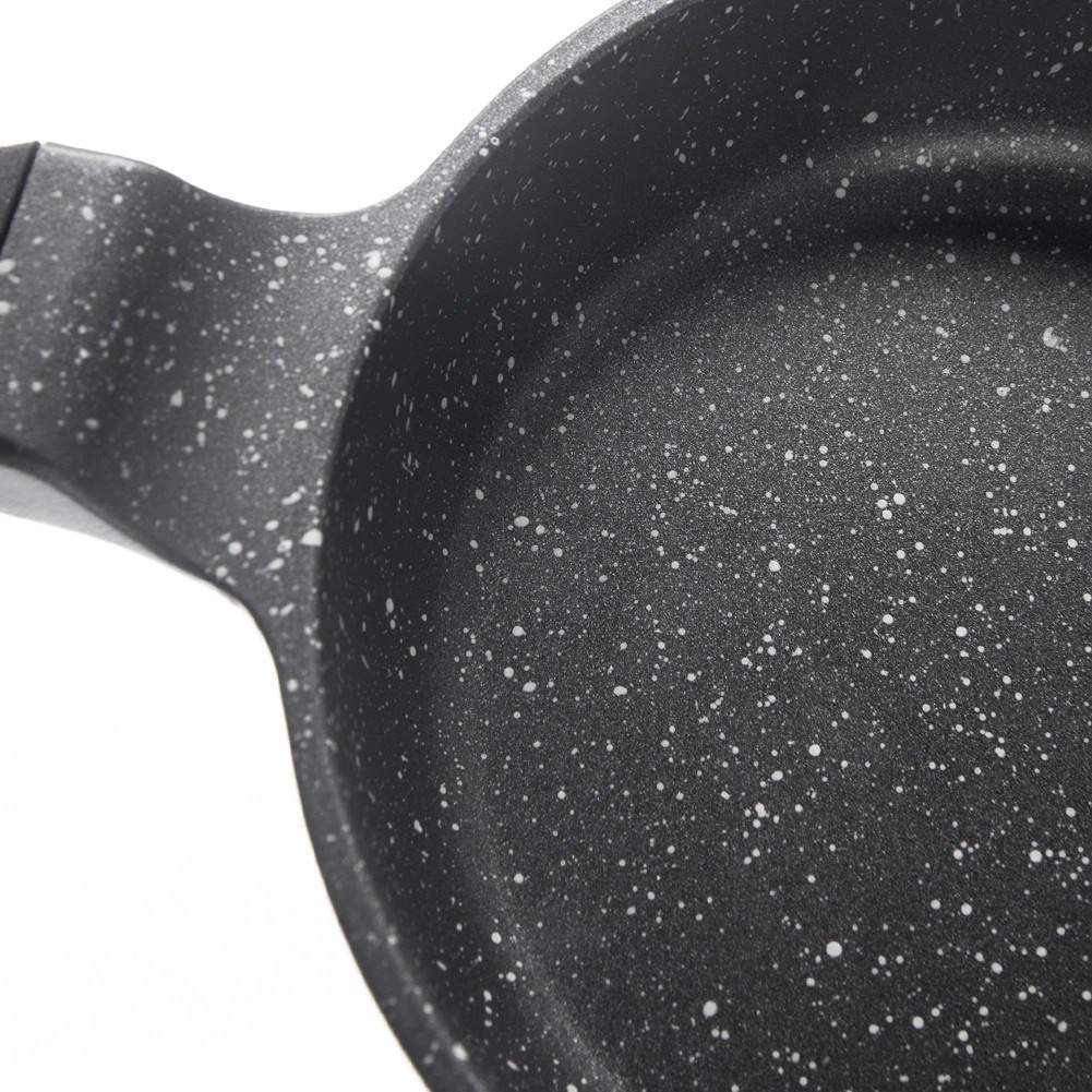 Această tigaie rezistentă din turnare de aluminiu combină distribuția rapidă a căldurii cu stratul antiaderent de granit Pfluon Granit de calitate, fără PFOA și PTFE. Este excelentă pentru prăjit ouă, carne, legume și clătite mici – dimensiune ideală pentru mic dejun rapid sau porții pentru o persoană.