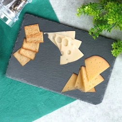 Placa de ardezie stilată este ideală pentru servirea brânzeturilor, mezelurilor, deserturilor și sushi-ului. Ardezia naturală neagră, cu suprafață fin texturată și margini brute, oferă oricărei mese un aspect modern și totodată rustic. Placa este excelentă atât pentru acasă, cât și pentru gastronomie.
