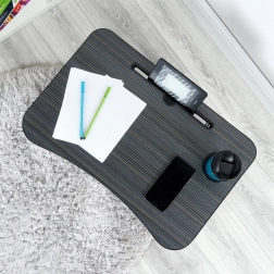 Lapdesk pliabil ideal pentru lucru cu laptopul sau tableta, citit și vizionat filme în pat sau pe canapea. Blatul durabil din MDF cu suprafață plăcută și picioarele metalice cu capete din cauciuc asigură stabilitate și protejează suprafețele de zgârieturi.