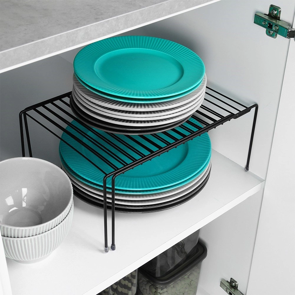 Creează un al doilea nivel pentru farfurii, boluri și pahare și dublează capacitatea dulapului. Organizare mai bună și acces mai rapid la obiecte în fiecare zi.