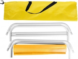 Datorită construcției pliabile, îl pliați și îl deschideți în câteva clipe. Include geantă de transport cu bretea pentru purtare confortabilă; geanta cu șezlongul pliat are dimensiunea 60 × 18 × 8 cm. Șezlongul este o alegere excelentă pentru plajă, terasă, balcon, grădină și pentru ieșiri la apă sau picnic.