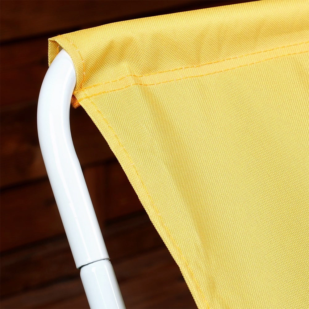 Țesătura din poliester, în nuanțe de galben, este plăcută la atingere și permite relaxare confortabilă atât pe plajă, cât și în grădină.