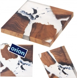 Suportul pătrat din lemn de salcâm cu inserție de rășină albă în stilul spectaculos „river” este un accesoriu practic și decorativ pentru bucătărie și living. Datorită suprafeței netede și grosimii solide, protejează fiabil blaturile de căldura băuturilor fierbinți și de umezeala paharelor reci.