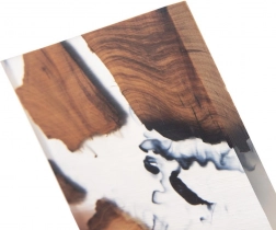 Combinația unică dintre lemnul de salcâm și rășina albă creează efectul unui curent de râu – fiecare piesă este unică și va înfrumuseța masa.