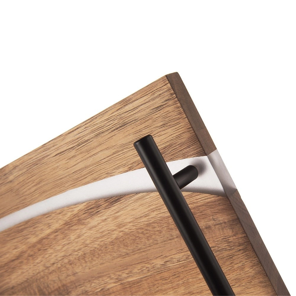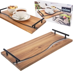 Tavă de servire stilată din lemn de salcâm cu mânere metalice stabile și rășină decorativă cu aspect de „râu”. Ideală pentru servirea cafelei, ceaiului, deserturilor și gustărilor acasă și în gastronomie. Dimensiuni 42 × 20 × 4,5 cm (înălțime fără mânere 1,5 cm). Construcție solidă, suprafață plăcut netedă și stil industrial LOFT care o fac atât un accesoriu atrăgător, cât și un ajutor practic.